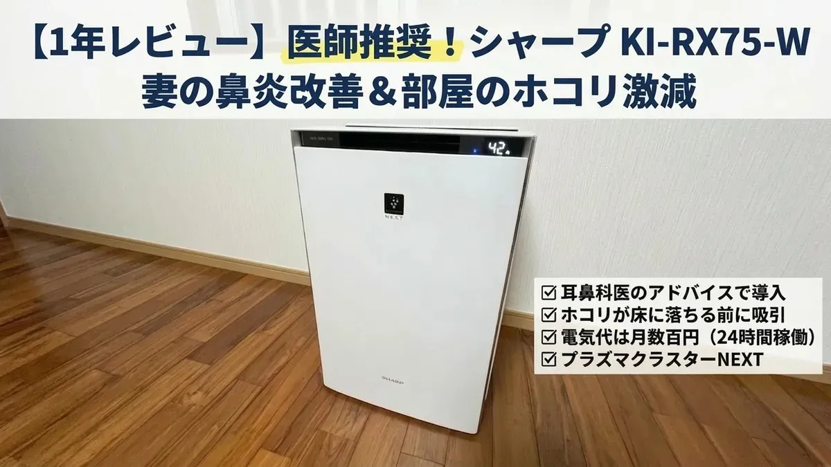 今回は、ご家族の鼻炎に悩んでいる方や、「部屋のホコリを減らして掃除を楽にしたい」「しっかり風邪対策もしたい」と考えている方に向けて、KI-RX75-Wを1年間使ってわかったリアルな効果をたっぷりとお届けする